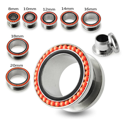 316L Surgical Steel With Orange Ball Black Edge Top Flesh Tunnel
