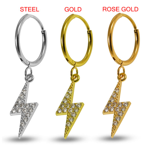 316L Surgical Steel CZ Jewelled Dangling Flash Hinged Earring Pair