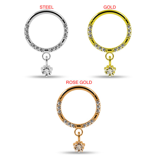 View full details316L Surgical Steel CZ Jewelled Dangling Star Hinged Segment Clicker Hoop