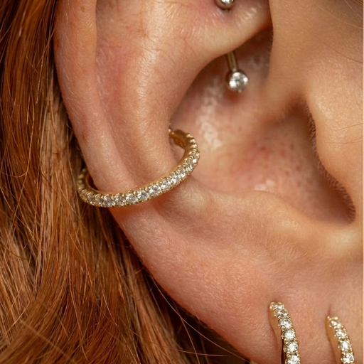 Made from implant-grade G23 Titanium, this hinged hoop features a sleek channel setting with sparkling Cubic Zirconia for a clean, modern fi...