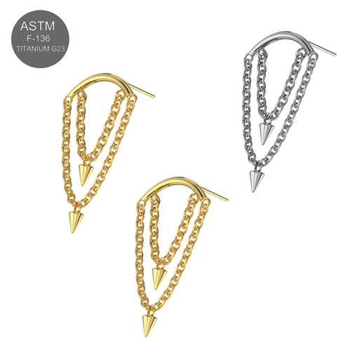 Add a touch of elegance with this G23 Grade Titanium Dangling Cone with Chain Fancy Design Thread-less Push-Fit Top. Available in sleek Titanium an...