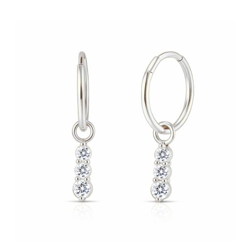 925 Sterling Silver Triple CZ Jewelled Drop Hinged Clicker Earrings