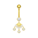 Crafted from 14K Gold, this belly bar features a fan-shaped design with sparkling cubic zirconia stones. The dangling accents add elegance and movement, making it a standout piece. Ideal for those who seek a unique and refined addition to their jewellery collection.