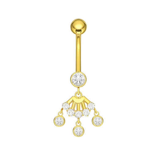 14K Gold CZ Jewelled Stones Dangling Belly Ring