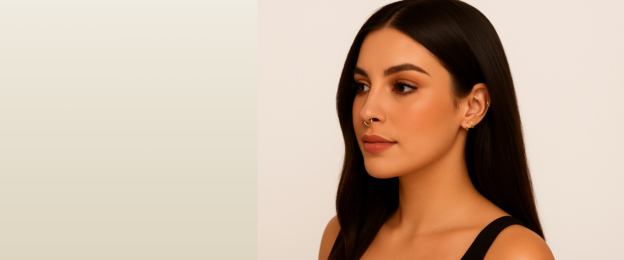 Choose from classic seamless hoops, easy-to-use clickers, and beautifully detailed nose studs including L bend, screw, bone end, and straight styles. Every design is available in a variety of looks — from minimalist gold finishes to sparkling pavé, beaded, or gemstone accents — allowing you to find your perfect match.