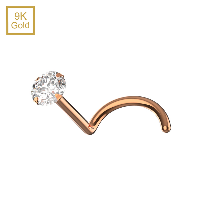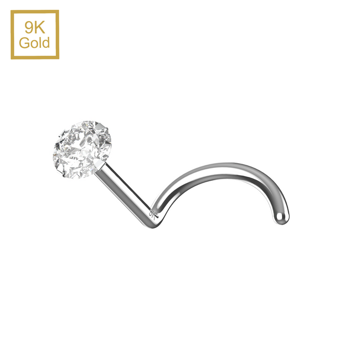9K Gold Round Cubic Zirconia Jewelled Nose Screw