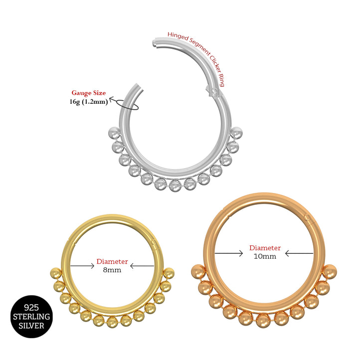925 Sterling Silver Bead Ball Hinged Segment Clicker Ring