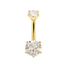 Crafted from genuine 14K Gold, this belly button ring offers lasting shine and elegance. Featuring two brilliant clear crystals, it delivers maximum sparkle from every angle. The secure claw settings ensure durability and comfort for everyday wear. A timeless piece of navel jewellery, perfect for adding luxury to any look.