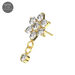 A delicate flower-shaped dangle top adorned with sparkling CZ stones. Crafted from high-quality G23 titanium for durability and safe wear. Threadless design ensures easy, secure attachment to piercings. Adds a graceful, eye-catching flair with elegant movement.