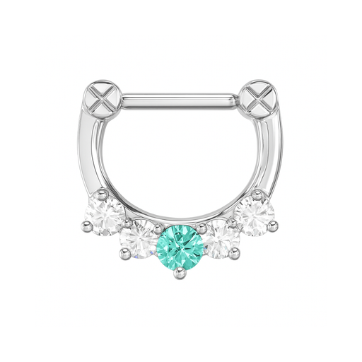 View full details316L Surgical Steel Five Pronged White & Aqua CZs Septum Clicker Ring