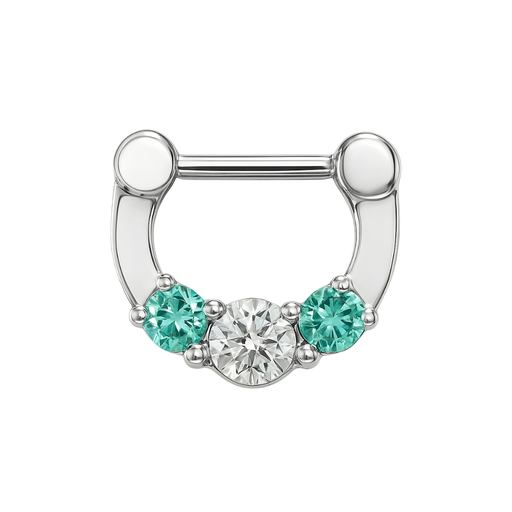 View full details316L Surgical Steel Three Pronged White and Aqua CZs Septum Clicker Ring