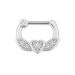 The 316L Surgical Steel septum clicker showcases a polished design with sparkling accents set in heart-shaped details. Built for all-day comfort, it features a secure hinged closure that makes it easy to wear and remove. A stylish and durable option for customers who appreciate fine craftsmanship in their body jewellery.