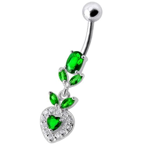 925 Sterling Silver Fancy Multi Stone Leafs With Heart Dangling Navel Ring