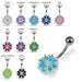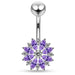 925 Sterling Silver Multi CZ Jewelled Lesser Calendine Flower Design Belly Ring