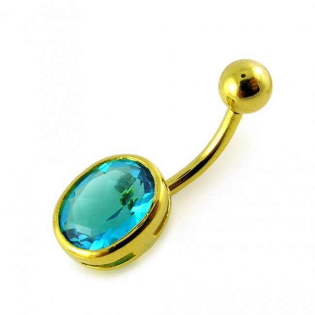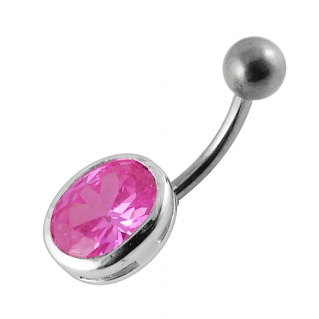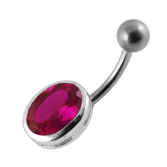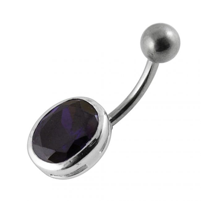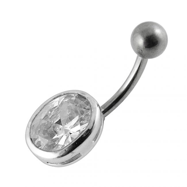 925 Sterling Silver Single Oval Shape Jewelled Non-Moving Belly Ring