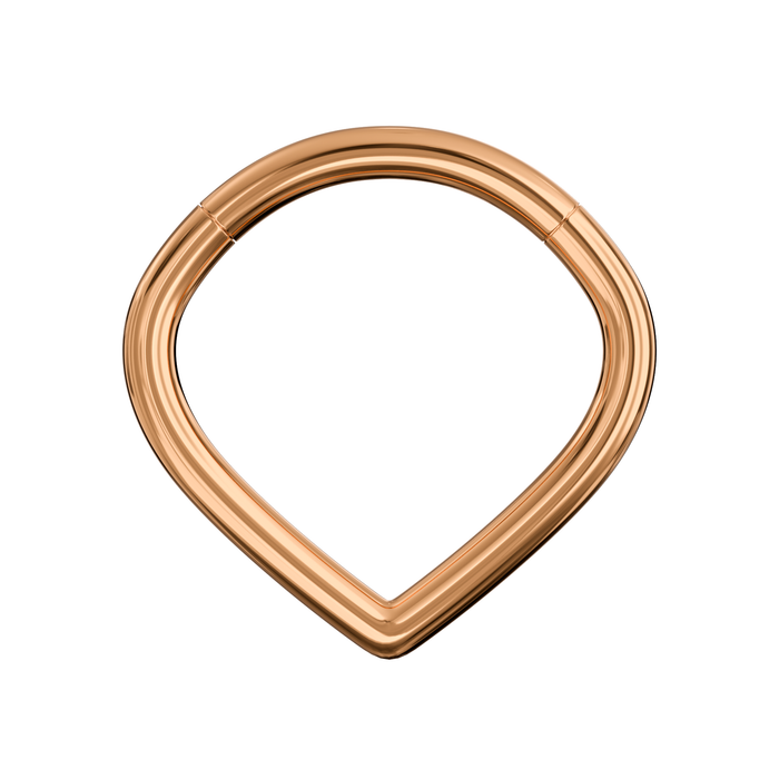 Make a sharp style statement with this V-shape hinged segment ring, expertly crafted from 316L Surgical Steel for strength, comfort, and durability. The sleek geometric design adds a bold yet minimalist edge, making it the perfect accessory for septum piercings, daith, helix, or other cartilage placements. The clicker-style hinge offers a secure fit with easy, hassle-free wear—ideal for everyday use or special occasions.