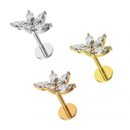 View full details316L Surgical Steel Tri Marquise CZ Jewelled Internally Threaded Top with Flatback Stud