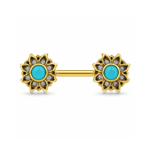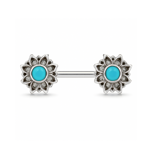 View full details316L Surgical Steel Flower Jewelled Turquoise Bead Nipple Bar