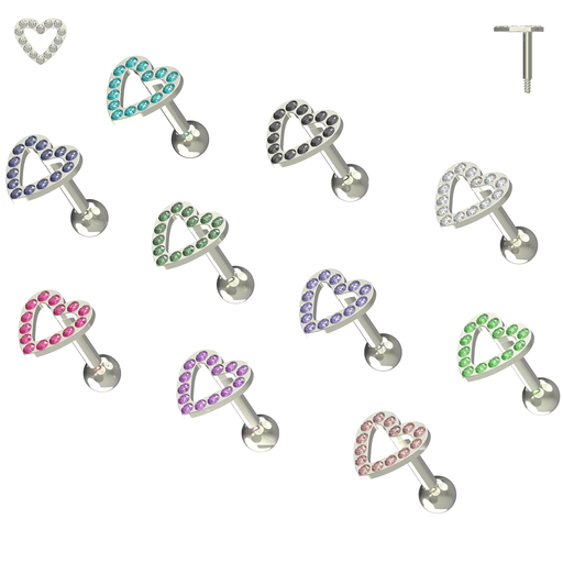 View full details925 Sterling Silver Round CZ Jewelled Internally Threaded top with Heart Base Labret