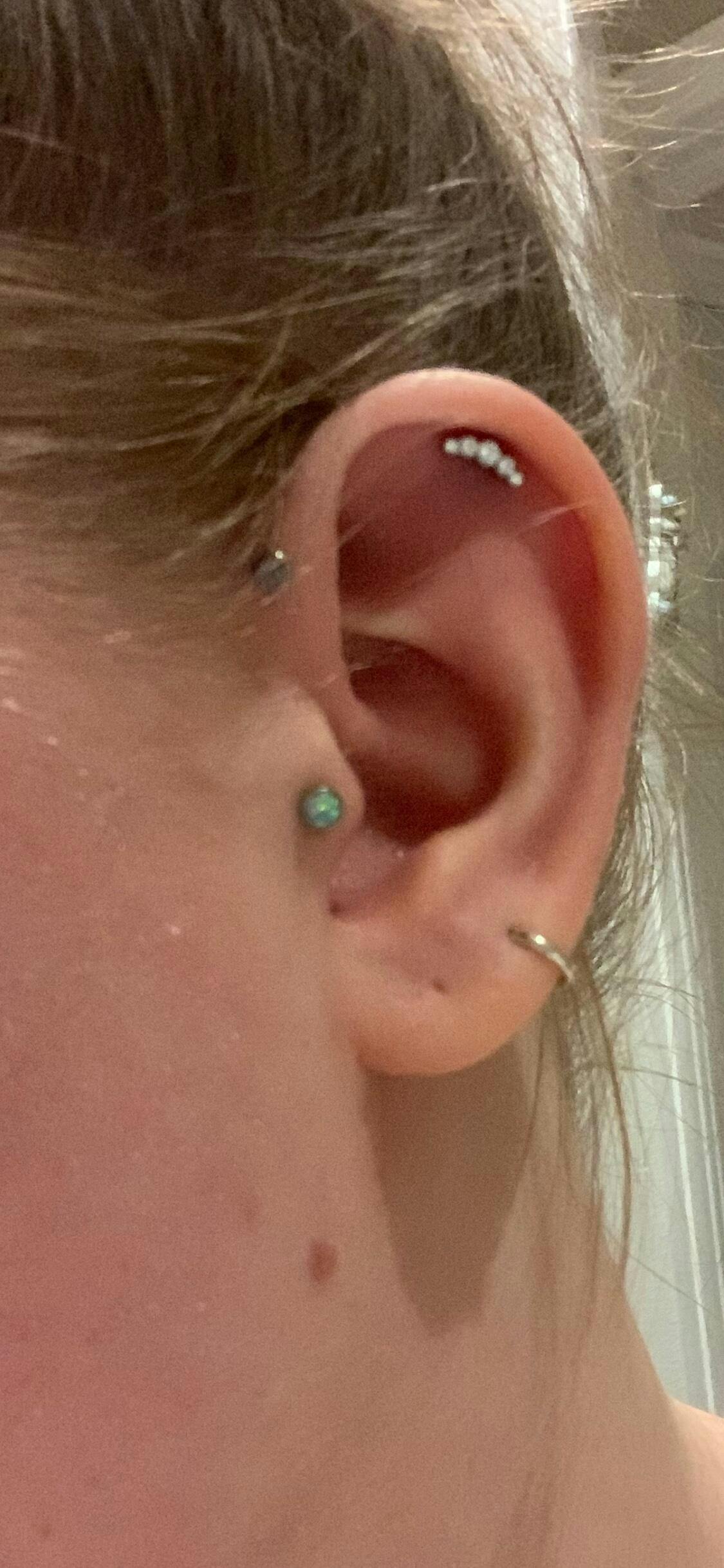 Made from implant-grade G23 Titanium, this labret stud features five graduated cubic zirconia stones in a graceful arc for brilliant sparkle. Ideal for sensitive piercings, it offers lightweight comfort and a secure push-fit flat back. Perfect for helix, tragus, conch, or lip placements, this push fit blends elegance with everyday wearability.