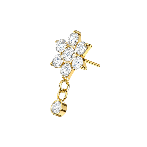 A delicate flower-shaped dangle top adorned with sparkling CZ stones. Crafted from high-quality G23 titanium for durability and safe wear. Threadle...