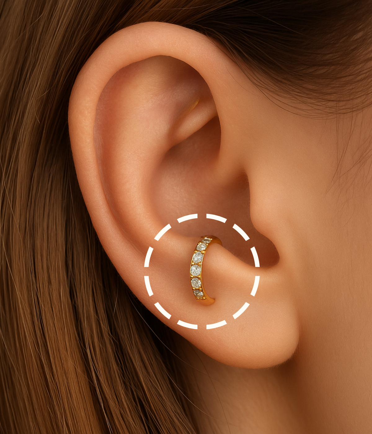 Anti-tragus piercings are becoming increasingly popular with the option to choose between studs and hoops for this piercing, the style possibilities are endless and a great way to add some flare if worn alone or stacked up with other ear piercings.