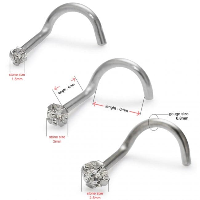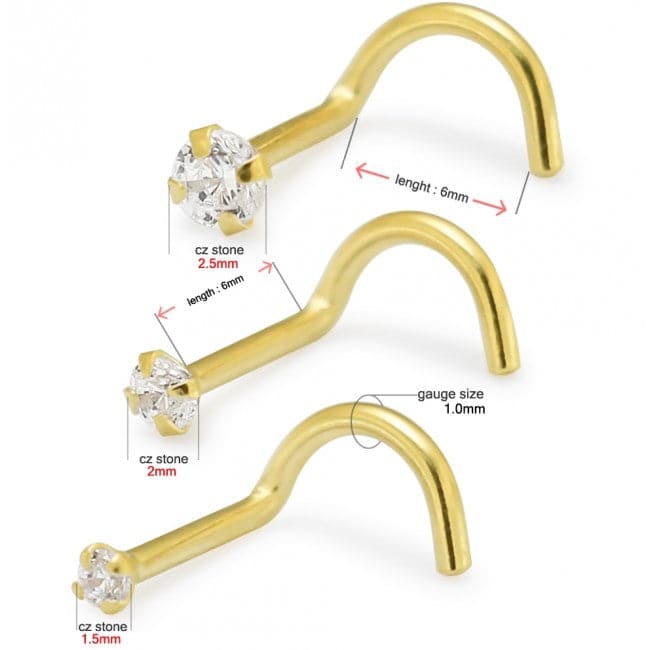 14K Gold Cubic Zirconia Set Nose Screw Stud