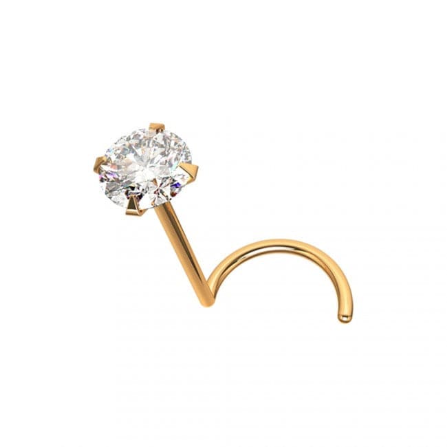 Adorn yourself with the grace that is an eternal sophistication of our Gold nose screw. This nose screw is made from genuine 14K Gold with a bright Cubic Zirconia of the highest quality that catches the ray of light. Also, this nose screw is made to fit comfortably and stay secure; so it can provide just a touch of subtle sophistication to your everyday styles or really step up your attire for special events