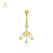 Crafted from 14K Gold, this belly bar features a fan-shaped design with sparkling cubic zirconia stones. The dangling accents add elegance and movement, making it a standout piece. Ideal for those who seek a unique and refined addition to their jewellery collection.
