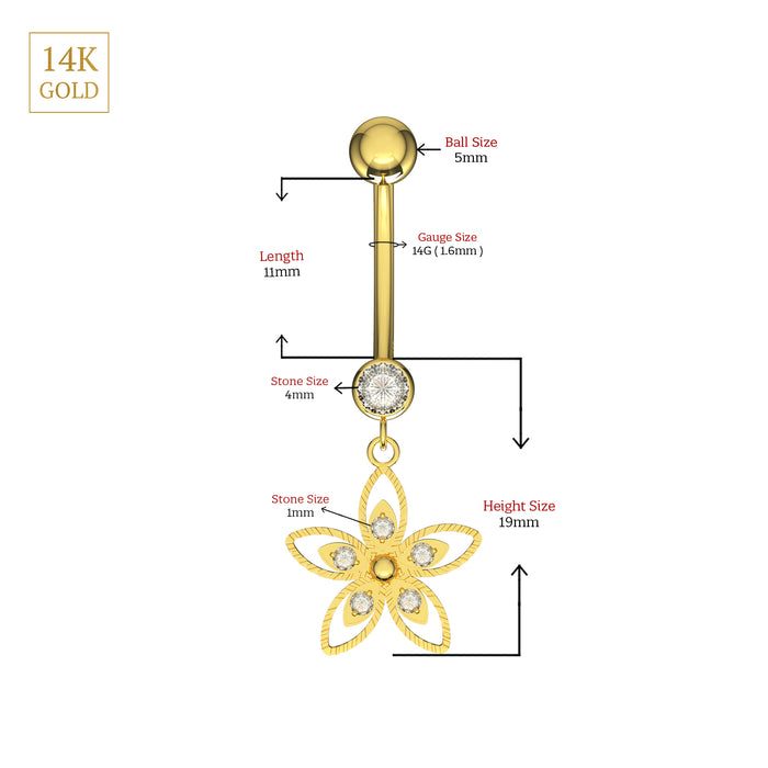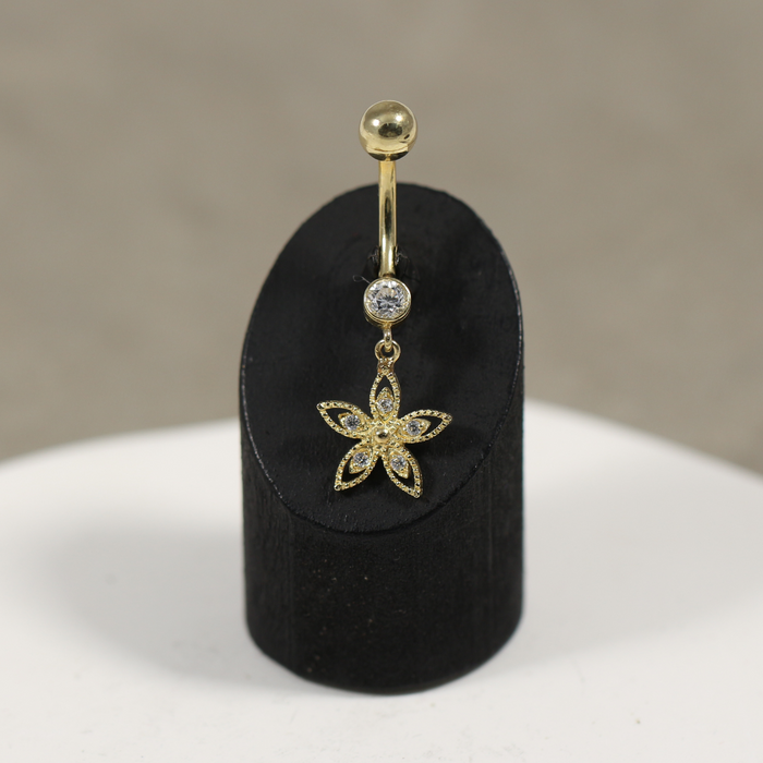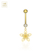 14K Gold CZ Jewelled Flower Design Dangling Belly Ring