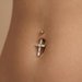 14K Gold Dangling Gemstone Cross Belly Ring