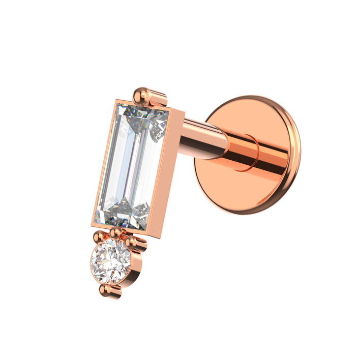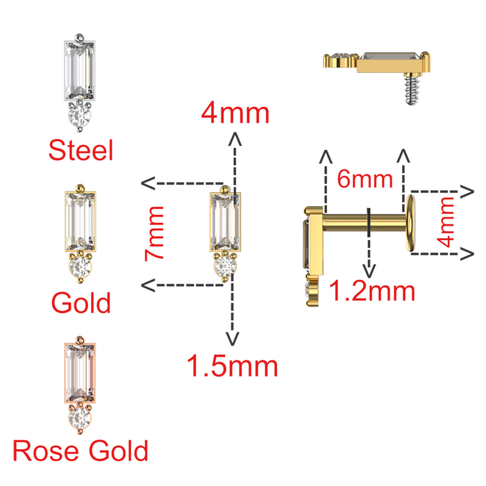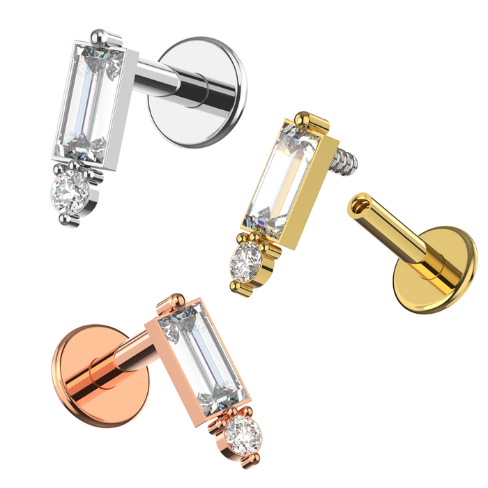 316L Surgical Steel CZ Rectangle Internally Threaded Flatback Stud