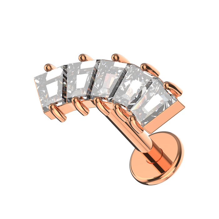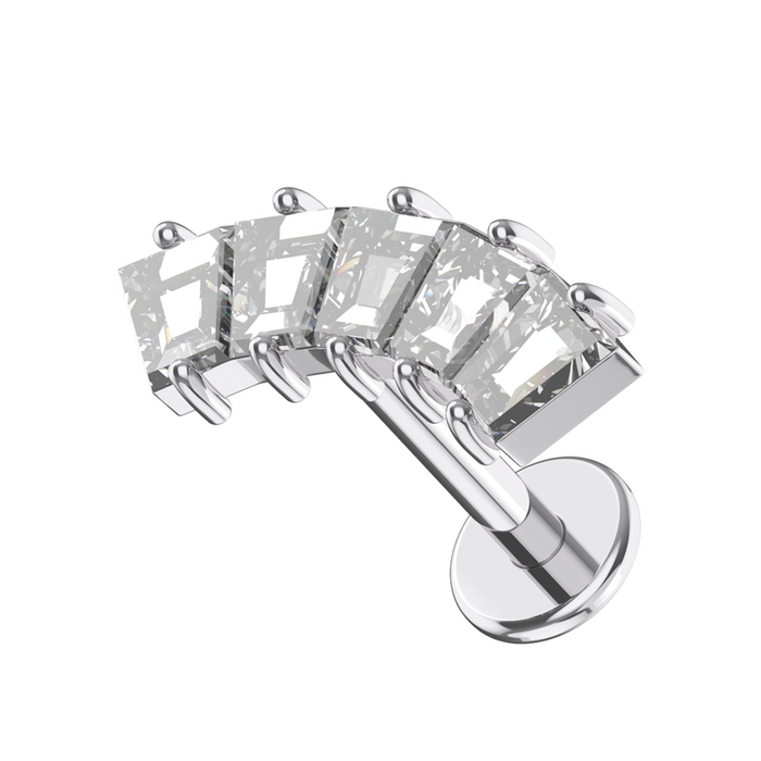 316L Surgical Steel Baguette CZ Jewelled Internally Threaded Flatback Stud