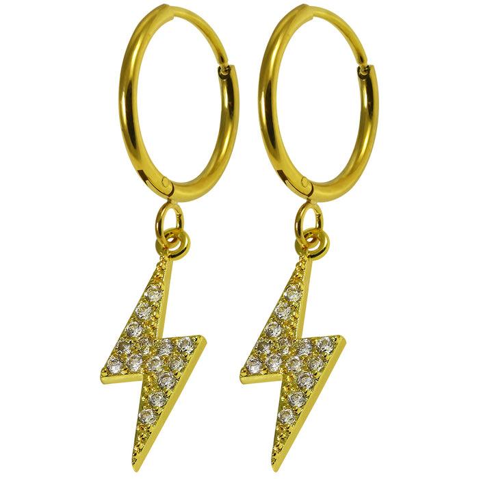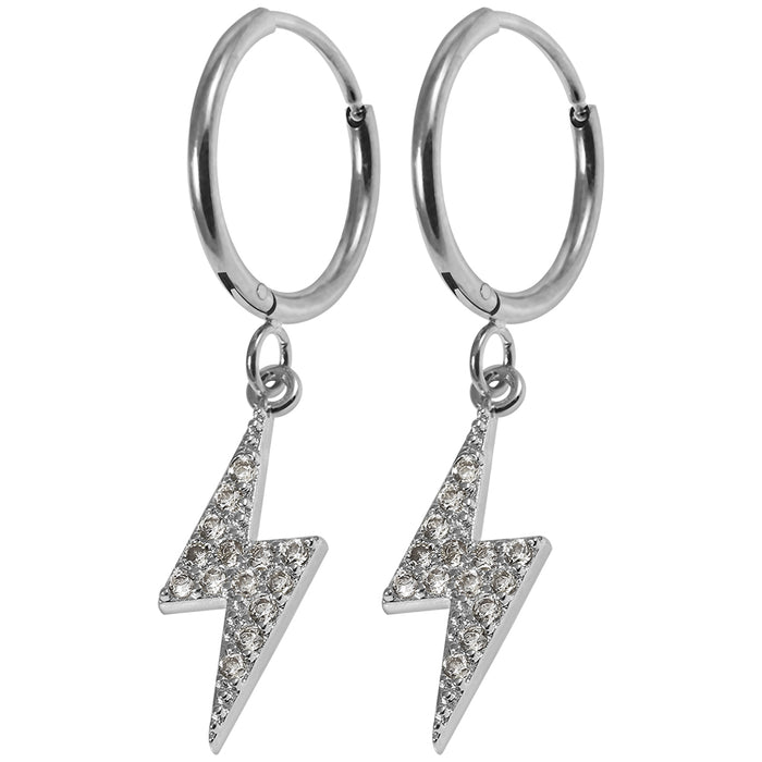 316L Surgical Steel CZ Jewelled Dangling Flash Hinged Earring Pair