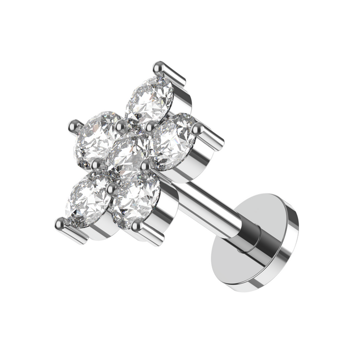 316L Surgical Steel CZ Jewelled Flower Internally Threaded Flatback Stud