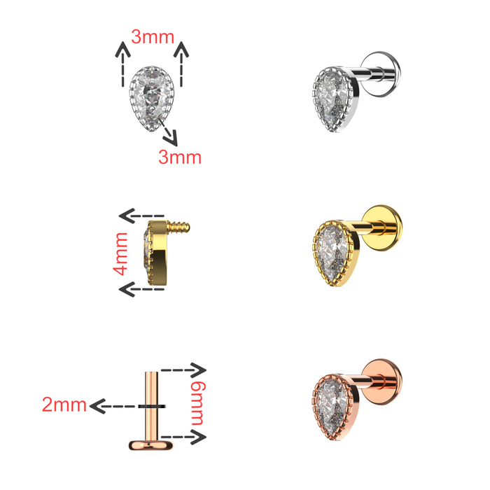 316L Surgical Steel Tear Drop Design Flatback Stud