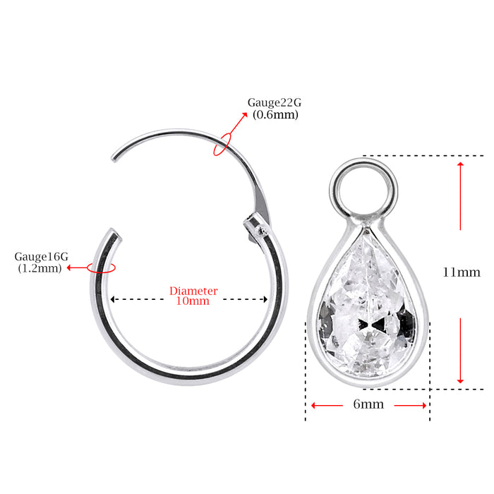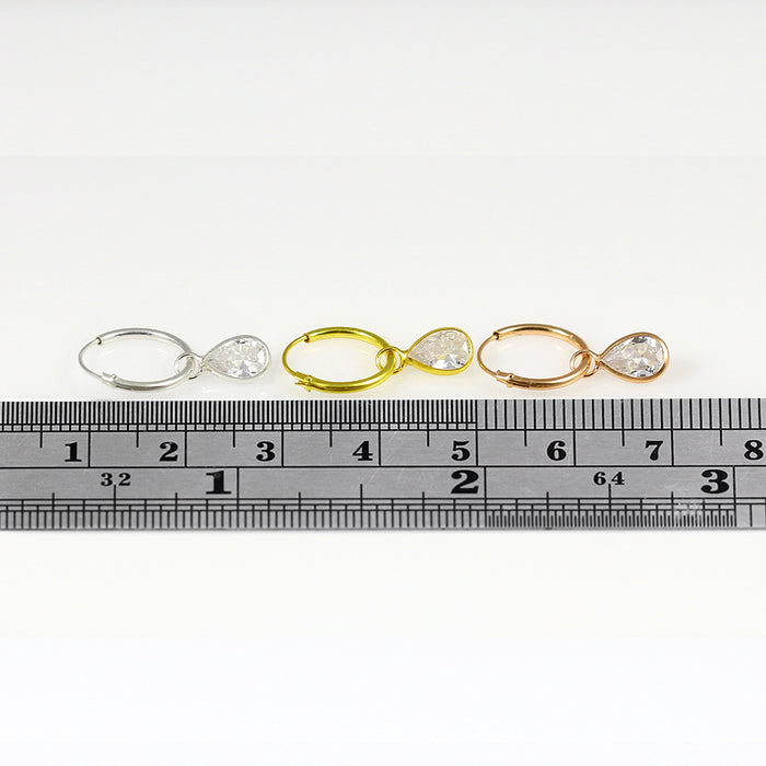925 Sterling Silver Tear Drop CZ Dangling Fashion Hoop Earring