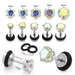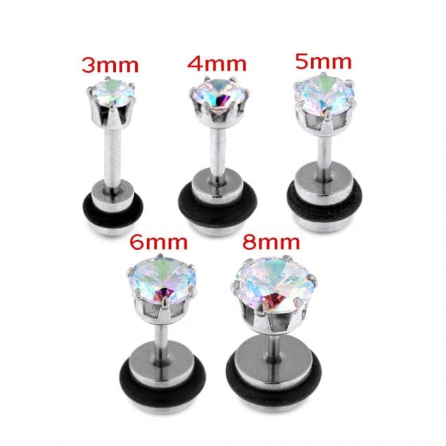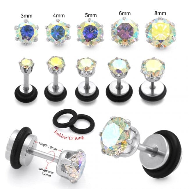 316L Surgical Steel Aurora Borealis Colour CZ Jewelled Fake Ear Plug with Drum