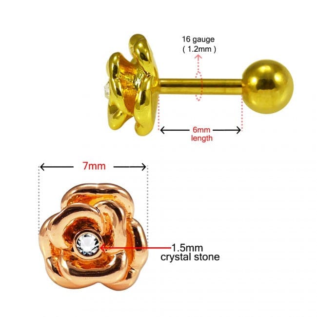 316L Surgical Steel CZ Jewelled Rose Flower Cartilage Ear Stud
