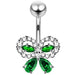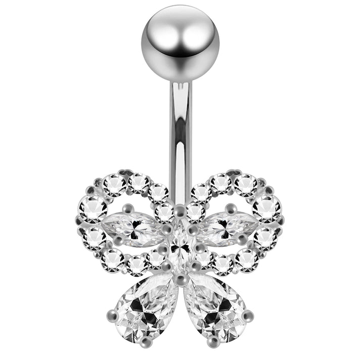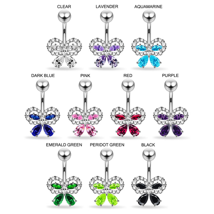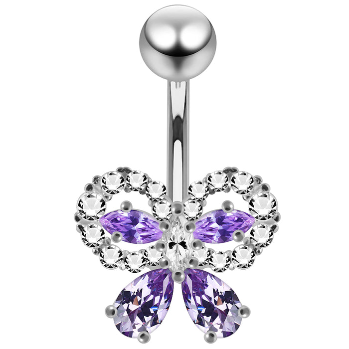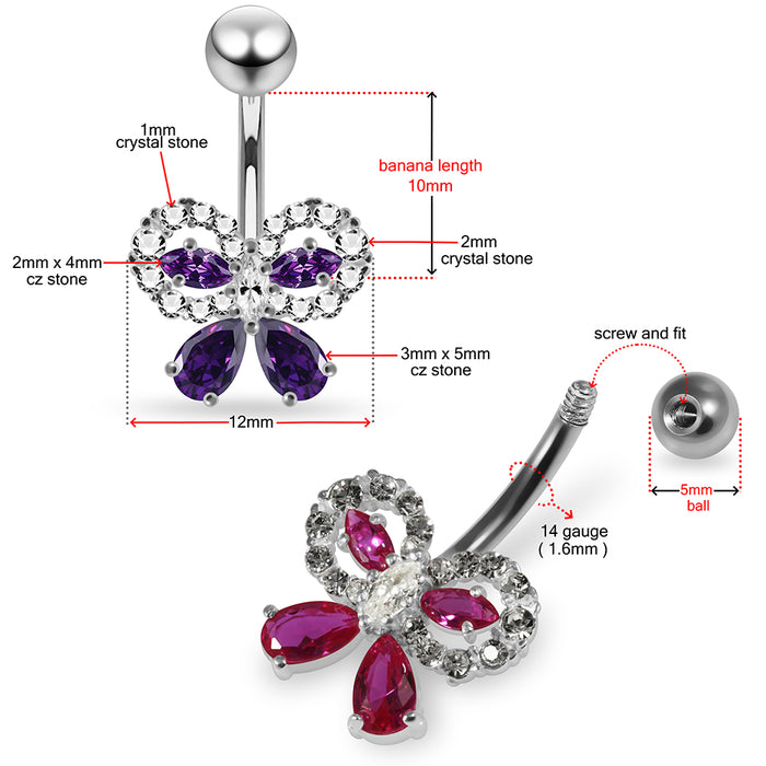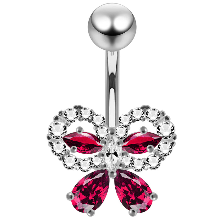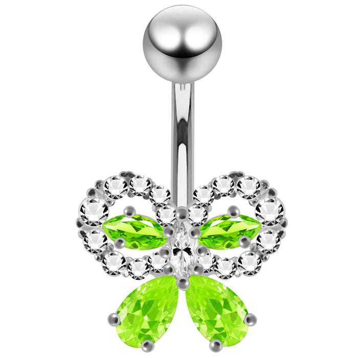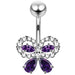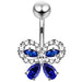 Make a statement with this exquisite butterfly belly bar, featuring sparkling crystals and vibrant colour gems in an eye-catching design. The intricate detailing highlights the wings, creating a bold yet elegant look perfect for any occasion. Available in a range of colours to suit your individual style.