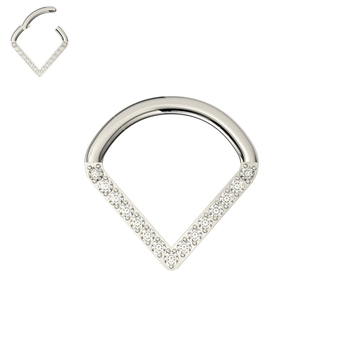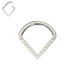 G23 Titanium CZ Jewelled V Shape Hinged Segment Clicker Ring