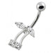 Elegant and eye-catching, this belly ring showcases four faceted gems arranged in a delicate, flowing design. Curved silver bars add a graceful touch, enhancing its refined aesthetic. A stylish choice for elevating your navel piercing jewellery collection.