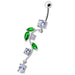 Designed with a flowing vine pattern, this belly bar combines detailed craftsmanship with a striking drop layout. The mix of marquise and round-cut stones adds contrast and dimension to your navel piercing jewellery. Perfect for those seeking a distinctive piece that stands out effortlessly.