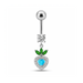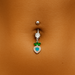 Featuring a playful blend of vibrant elements, this belly ring combines a heart-shaped gem with green marquise accents arranged to resemble a stylised fruit. A halo of clear stones around the centrepiece adds refined sparkle, while the polished bar creates a crisp, modern silhouette. Perfect for adding a fresh and eye-catching touch to your navel piercing jewellery.