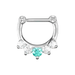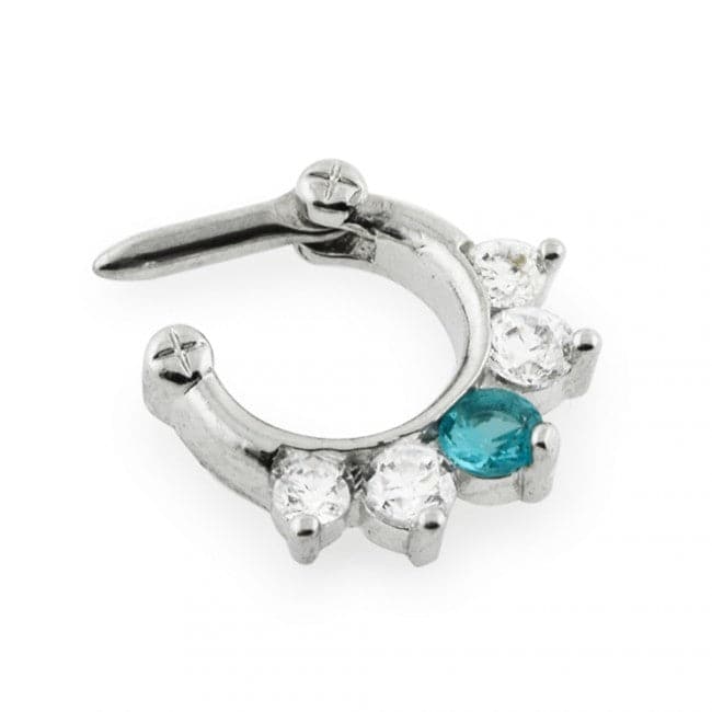 316L Surgical Steel Five Pronged White & Aqua CZs Septum Clicker Ring