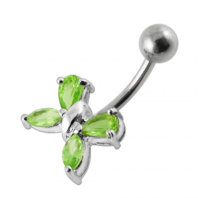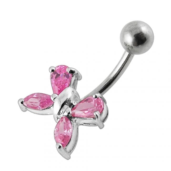Add a touch of nature-inspired beauty with this flower belly bar, featuring sparkling gem petals arranged in a graceful, symmetrical design. The sleek curved bar adds comfort and style, making it perfect for everyday wear or special occasions. An elegant choice for those who love floral navel piercing jewellery.