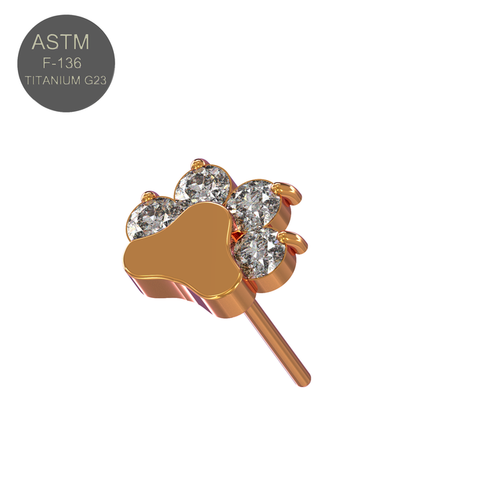 In summary, the G23 grade titanium CZ jeweled threadless push-fit top with paw design is a beautifully crafted piece that combines high-quality materials with a unique and playful design. Its durable and hypoallergenic titanium construction, paired with the sparkling cubic zirconia stones, makes it a perfect choice for those seeking both beauty and practicality in their body jewelry. Available in multiple colors, this top offers a secure and comfortable fit, making it an excellent addition to any piercing collection.