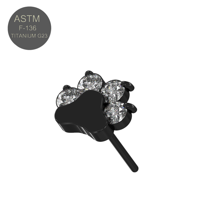 G23 Titanium CZ Jewelled Paw Threadless Push-fit Top