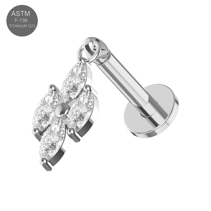 G23 Titanium 4 CZ Marquise Jewelled Thread-less Push-Fit With Flatback Stud