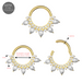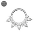 Expertly crafted from G23 Titanium, this clicker ring offers lasting strength and hypoallergenic comfort. It features a striking arrangement of white cubic zirconia, with a graceful crescent of pear-cut gems radiating in a crown-like formation. Delicate round stones accent the arch, adding layers of brilliance and intricate detail. Perfect for septum and daith piercings, this piece provides a refined, statement-making look—ideal for those seeking premium Titanium body jewellery with standout style.
